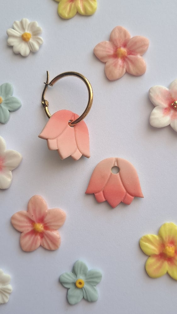 Pampilles fleurs interchangeables et réversibles montées sur créoles.
